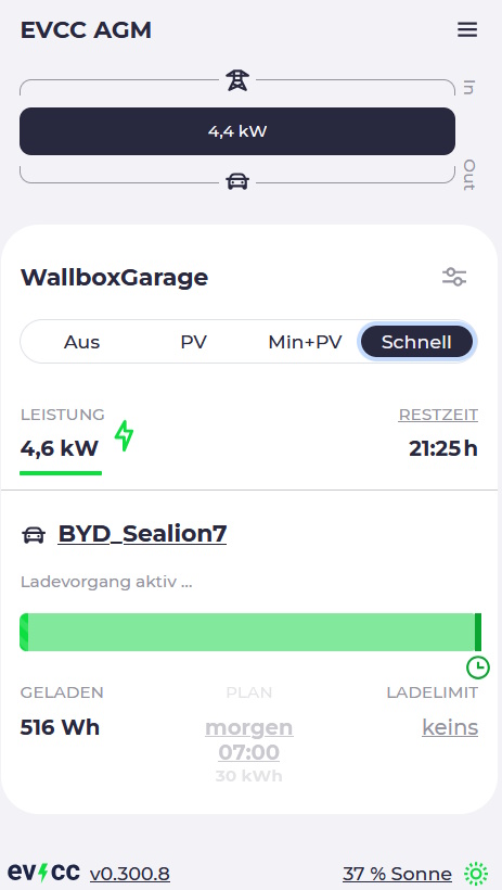 Die Wallbox wird aus EVCC mit verschiedenen Optionen (PV, Min+PV, Schnell) mit Daten aus HA (Smartmeter, Wechselrichter und Batteriedaten) betrieben. Ein rundum rundes System, die Hardware hat hoch Potential für weitere VMs.